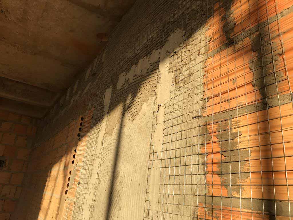 Como o concreto e alvenaria reagem diferentemente às repentinas mudanças de temperatura e do clima da região, foram granizadas de telas de estuque no encontro entre pilares e vigas. Assim, as micros fissuras causadas por esta ação, praticamente são anuladas.