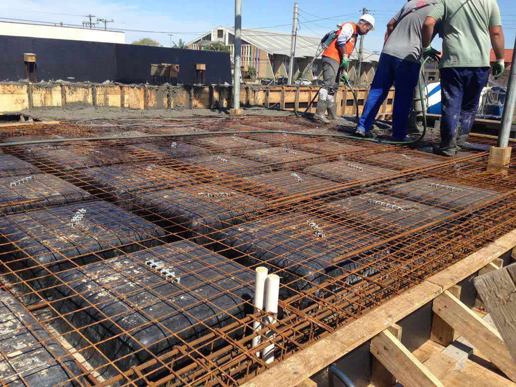 Inicialmente chamado pelos romanos de rocha líquida, o concreto armado é composto de cimento, areia, brita, água e estruturado com aço.