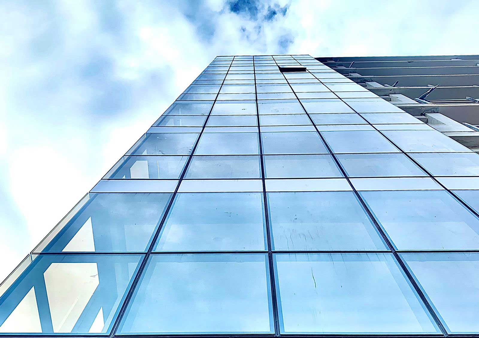 Conta com vidros duplos e de segurança, também com película. Além de destaque às fachadas, com sua leveza estética e segurança aos usuários, oferecem proteção contra a incidência dos raios solares, que contribui na redução do consumo energético para a climatização dos ambientes e na redução de ruídos externos.