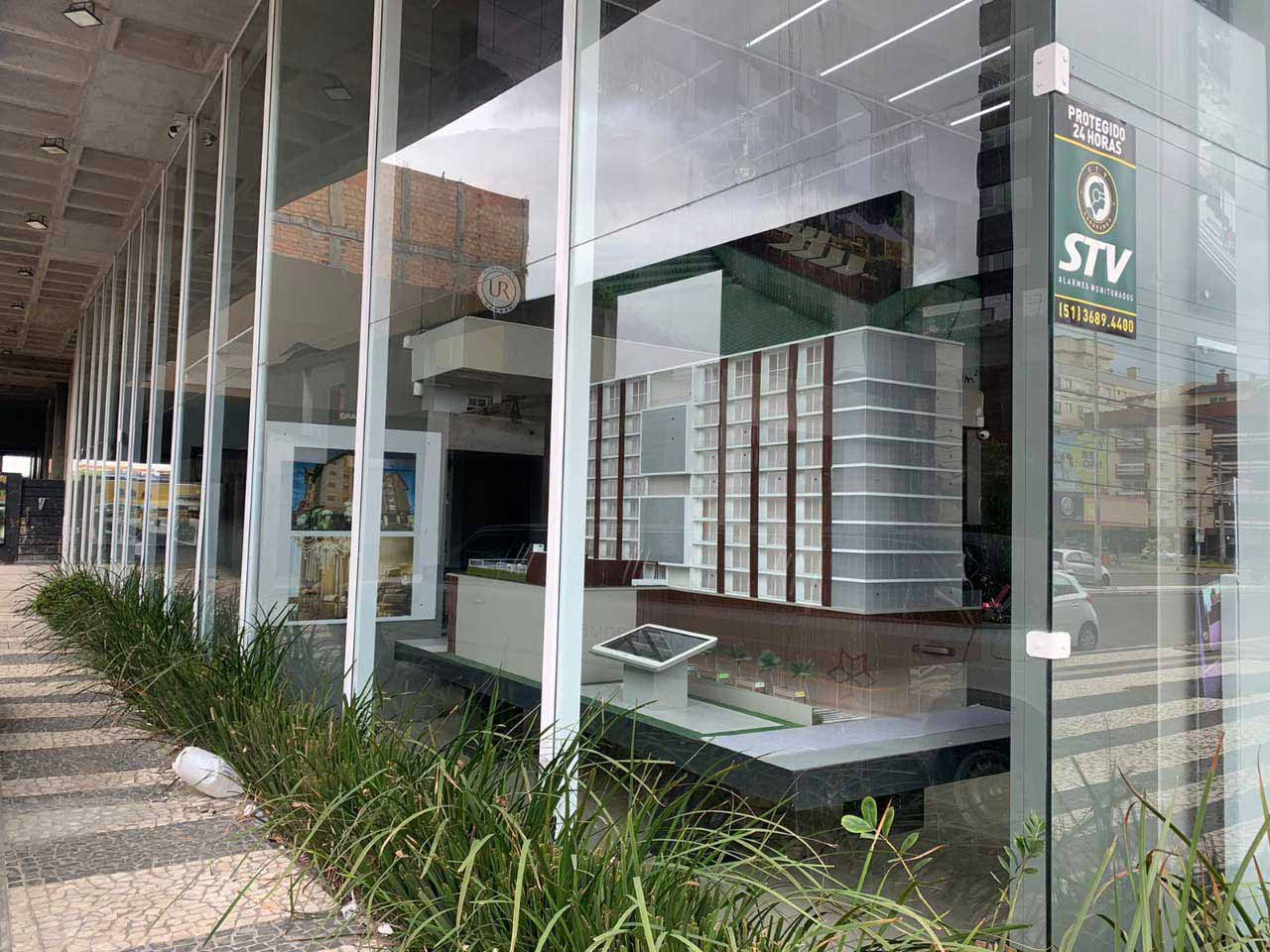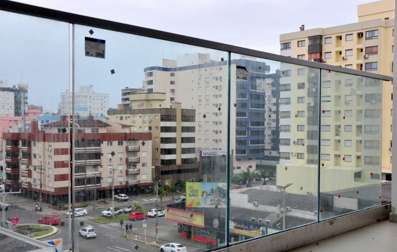 Vidros Triplos: Vidro 3mm, película protetora colada + vidro com 3mm, camada de ar + vidro temperado com 5mm.
